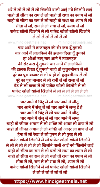 Lyrics of Khilone Wali Aayi Naye Khilone Layi - खिलौने वाली आई नये खिलौने लाई
