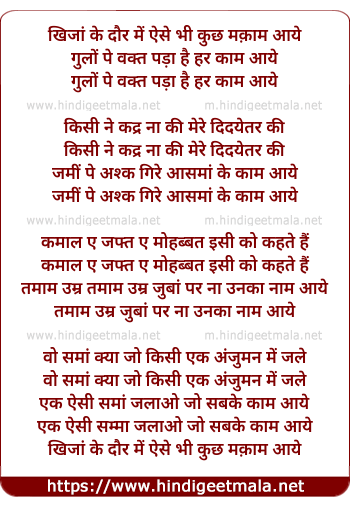 Lyrics of Khizan Ke Daur Me - खिजां के दौर में ऐसे भी कुछ मक़ाम आये