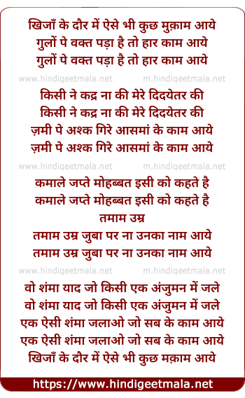 Lyrics of Khizan Ke Daur Mein Aise Bhi - खिजाँ के दौर में ऐसे भी कुछ मुक़ाम आये