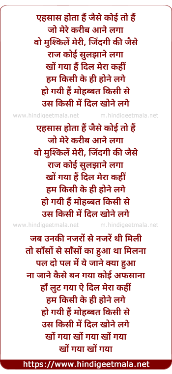 Lyrics of Kho Gayaa - एहसास होता हैं जैसे कोई तो हैं