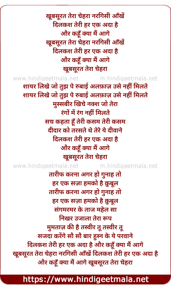 Lyrics of Khoobsurat Tera Chehra - खूबसूरत तेरा चेहरा