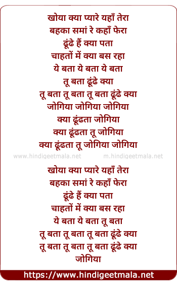 Lyrics of Khoya Kya Pyaare Yaha Tera (Jogiya) - खोया क्या प्यारे यहाँ तेरा