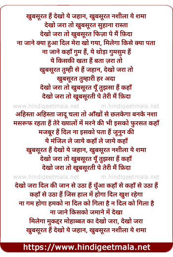 Lyrics of Khubsurat Hai Dekho Yeh Jahaan - खुबसूरत हैं देखो ये जहान