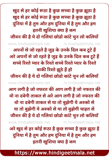 Lyrics of Khud Se Har Koi Rootha Hai Kuch Sacha Kuch Jutha Hai - खुद से हर कोई रूठा है कुछ सच्चा है कुछ झूठा है