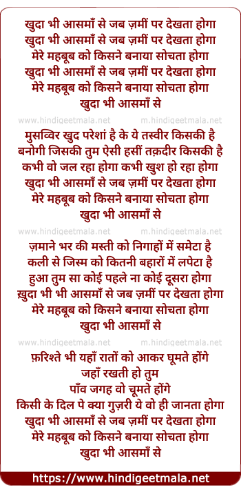 Lyrics of Khuda Bhee Aasman Se Jab - खुदा भी आसमाँ से जब