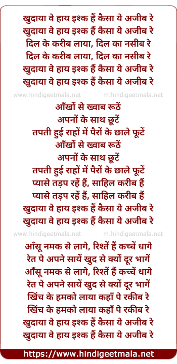 khudaaya ve haay ishq hai kaisa ye ajeeb re