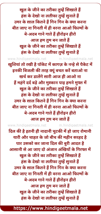Lyrics of Khul Ke Jeene Kaa - खुल के जीने का