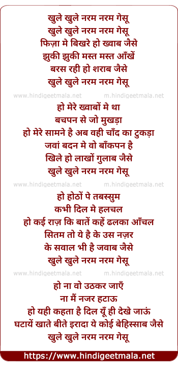 Lyrics of Khule Khule Naram Naram Gesu - खुले खुले नरम नरम गेसू