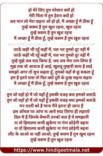 Lyrics of Tumhe Kasam Hai Tum Khush Rahana - तुम्हें कसम हैं तुम खुश रहना