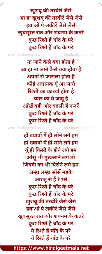 Lyrics of Khushbu Ki Tasvire - खुशबू की तस्वीरें जैसे