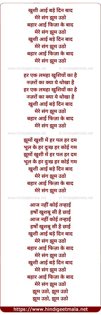 Lyrics of Khushee - खुशी आई बड़े दिन बाद
