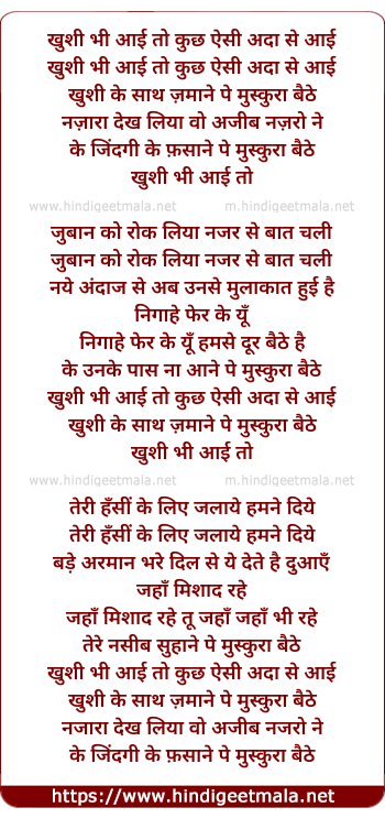 Lyrics of Khushi Bhi Aayi To Kuch Aisi Adaa Se Aayi - खुशी भी आई तो कुछ ऐसी अदा से आई