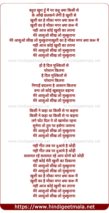 Lyrics of Khushi Ka Hai Mauka, Magar Kya Karu Mai - खुशी का है मौका मगर क्या करूँ मैं