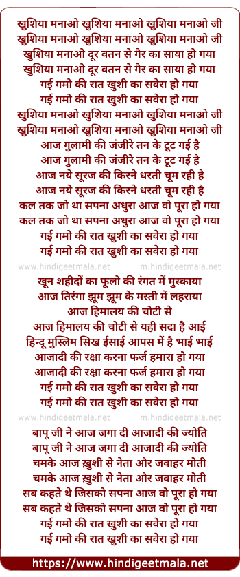 Lyrics of Khushiya Manao Khushiya Manao - खुशिया मनाओ खुशिया मनाओ