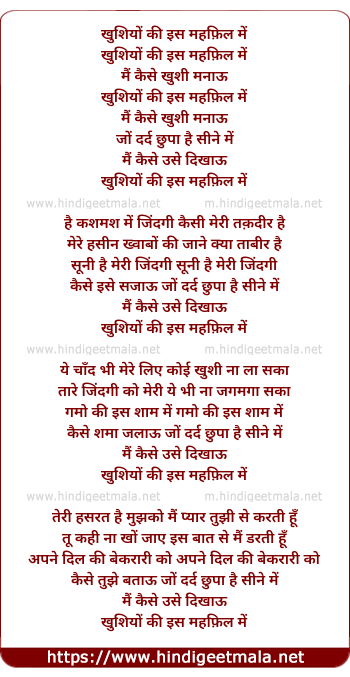 Poetic Translation - Lyrics of Khushiyo Ki Is Mehfil - खुशियों की इस महफ़िल