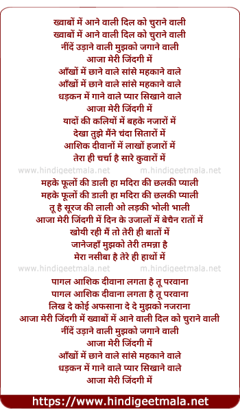 Lyrics of Khwabo Me Aane Wali Dil Ko Churane Wali - ख्वाबों में आने वाली दिल को चुराने वाली