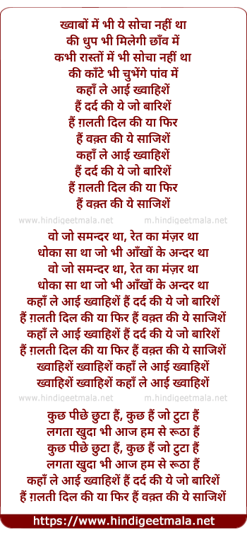 Lyrics of Khwaishein (Film Version) - ख्वाबों में भी ये सोचा नहीं था