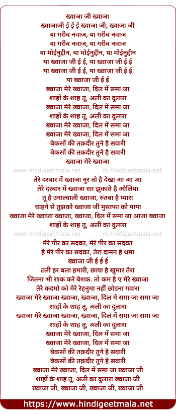 Lyrics of Khwaja Mere Khwaja Dil Me Sama Ja - ख्वाजा मेरे ख्वाजा दिल में समा जा