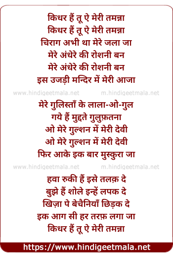 Lyrics of Kidhar Hai Tu Aye Meri Tamannaa - किधर हैं तू ऐ मेरी तमन्ना