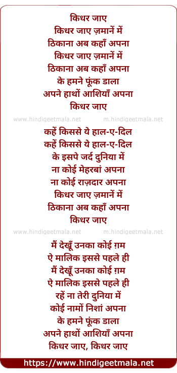 Lyrics of Kidhar Jayein Zamaane Me - किधर जाए ज़माने में