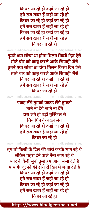Lyrics of Kidher Ja Rahe Ho Kaha Ja Rahe Ho - किधर जा रहे हो कहाँ जा रहे हो