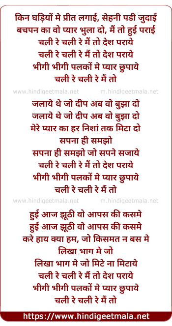 Lyrics of Kin Ghadiyon Mein Priit Lagai (Chali Re Chali Main To Desh Praye) - किन घड़ियों मे प्रीत लगाई