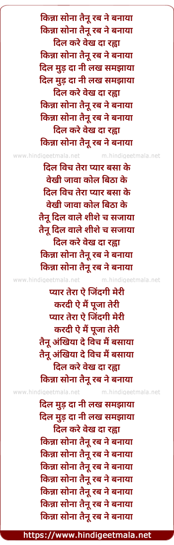 Lyrics of Kina Sohna - किन्ना सोना तैनू रब ने बनाया
