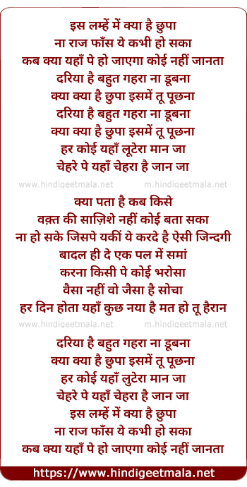 Lyrics of Kis Lamhe Me Kya Hain Chhupa (Male) - इस लम्हें में क्या है छुपा