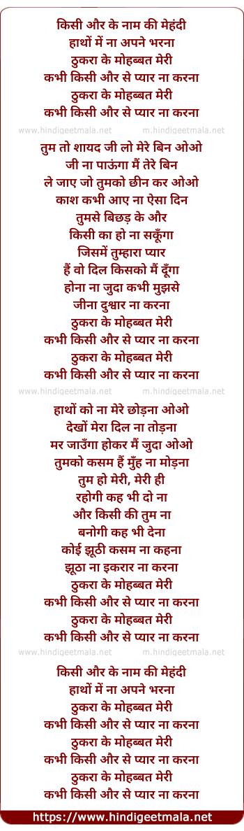 Lyrics of Kisi Aur Ke Naam Ki Mehndi - किसी और के नाम की मेहंदी