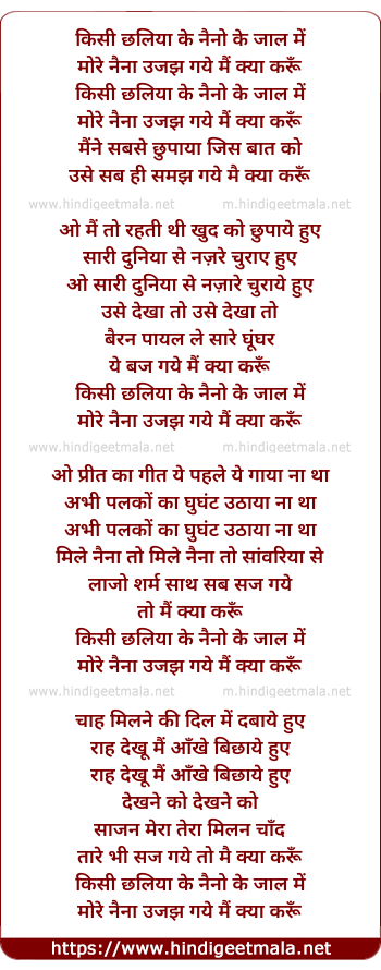 Lyrics of Kisi Chhaliya Ke Naino Ke Jaal Me - किसी छलिया के नैनो के जाल में