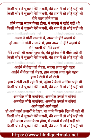 kisi chor ne churaali meri nathni, ki raat main to soyi padi thi