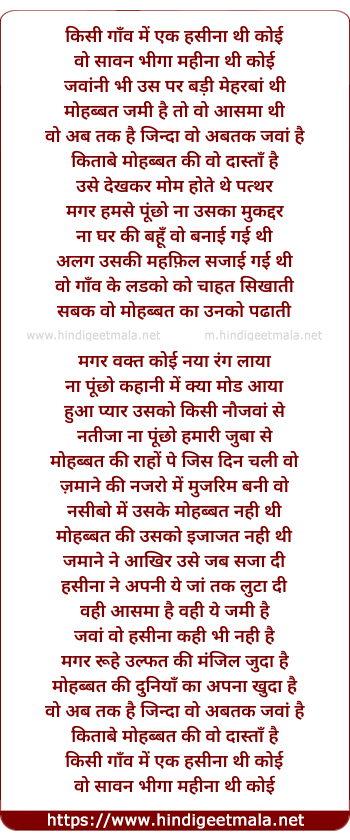 Lyrics of Kisi Gaon Me Ek Hasina Thi - किसी गाँव में एक हसीना थी