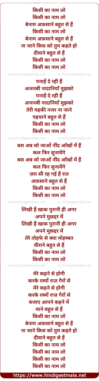 Lyrics of Kisi Ka Naam Lo - किसी का नाम लो