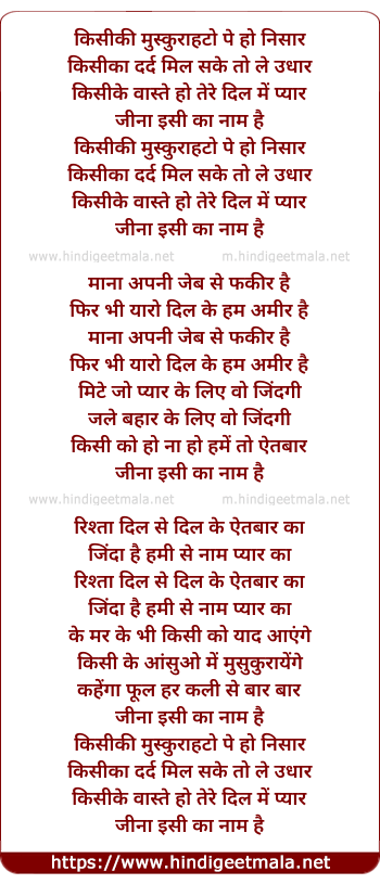 Lyrics of Kisi Ki Muskurahto Pe Ho Nisaar - किसीकी मुस्कुराहटो पे हो निसार