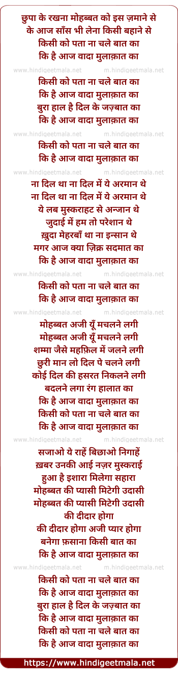 ke hai aaj wada mulakat ka