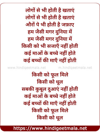 Lyrics of Kisi Ko Phool (2) - लोगों से भी होती है खताएं