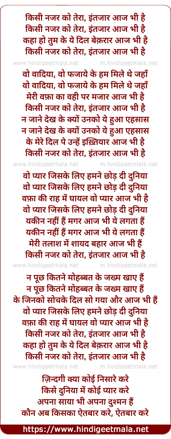 Lyrics of Kisi Nazar Ko Tera, Intajaar Aaj Bhi - किसी नजर को तेरा इंतजार आज भी है