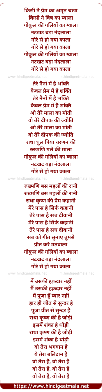 Lyrics of Kisi Ne Prem Ka Amrit Chakha - किसी ने प्रेम का अमृत चखा