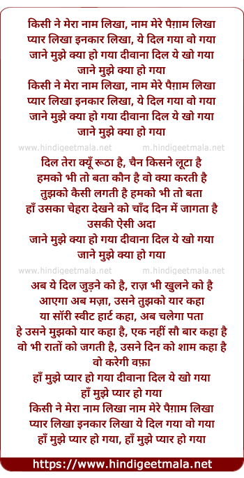 Lyrics of Kisi Ne Meraa Nam Likha, Nam Mere Paigam Likha - किसी ने मेरा नाम लिखा, नाम मेरे पैग़ाम लिखा