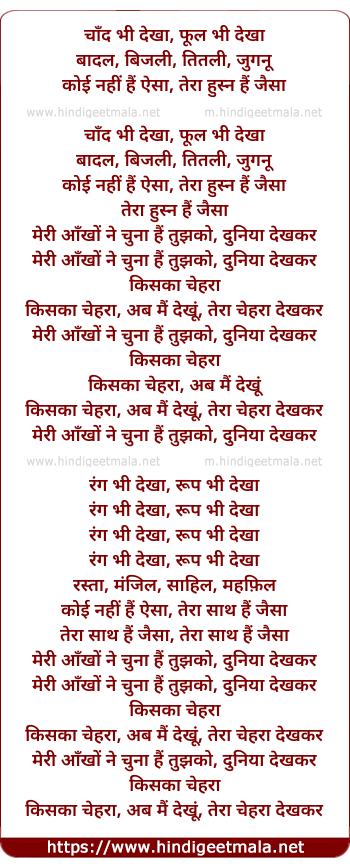 Lyrics of Kiska Chehra Ab Mai Dekhu - चाँद भी देखा, फूल भी देखा
