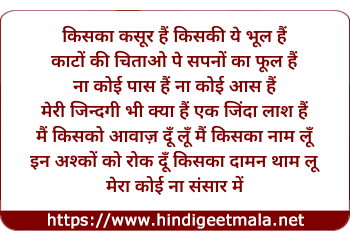 Lyrics of Kiska Kusur Hai Kiski Ye Bhul Hai - किसका कसूर हैं किसकी ये भूल हैं