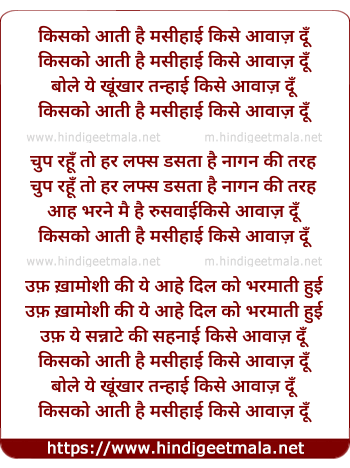 Lyrics of Kisko Aati Hai Masihai - किसको आती है मसीहाई किसे आवाज़ दूँ