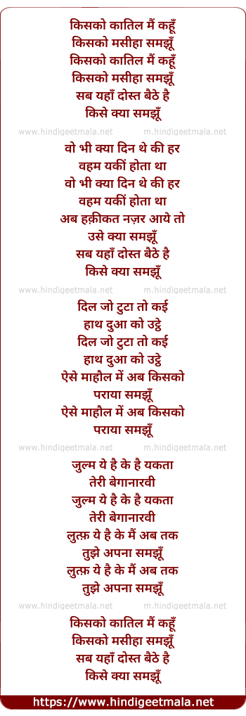 Lyrics of Kisko Qatil Main Kahun - किसको कातिल मैं कहूँ