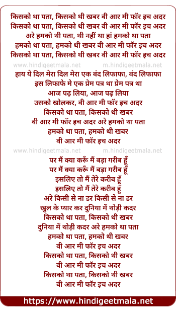 Lyrics of Kisko Tha Pata, Kisko Thi Khabar - किसको था पता, किसको थी खबर