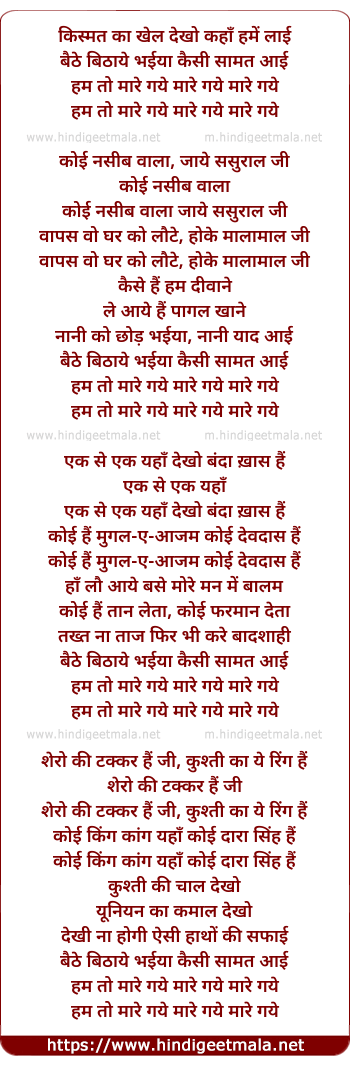 Lyrics of Kismat Ka Khel Dekho - किस्मत का खेल देखो