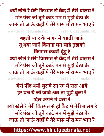 Lyrics of Kismat Se - क्यों खेले रे मेरी किस्मत से कैद में तेरी बालम रे