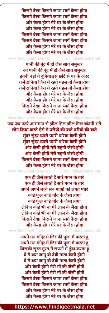 Lyrics of Kisne Dekha Hai Jana Sawrag Kaisa Hoga - किसने देखा किसने जाना स्वर्ग कैसा होगा