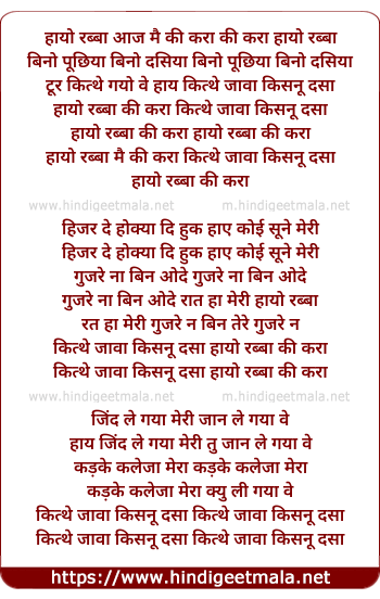 Lyrics of Kit Java Kisnu Dasa Hayo Rabba Ki Kara - कित्थे जावा किसनू दसा हायो रब्बा की करा