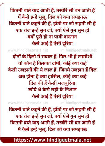 Lyrics of Kitanee Baate Yad Aati Hai - कितनी बाते याद आती हैं