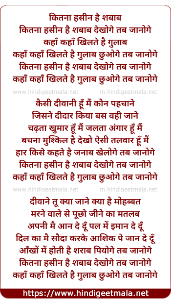 Lyrics of Kitna Haseen Hai Shabaab - कितना हसीन है शबाब